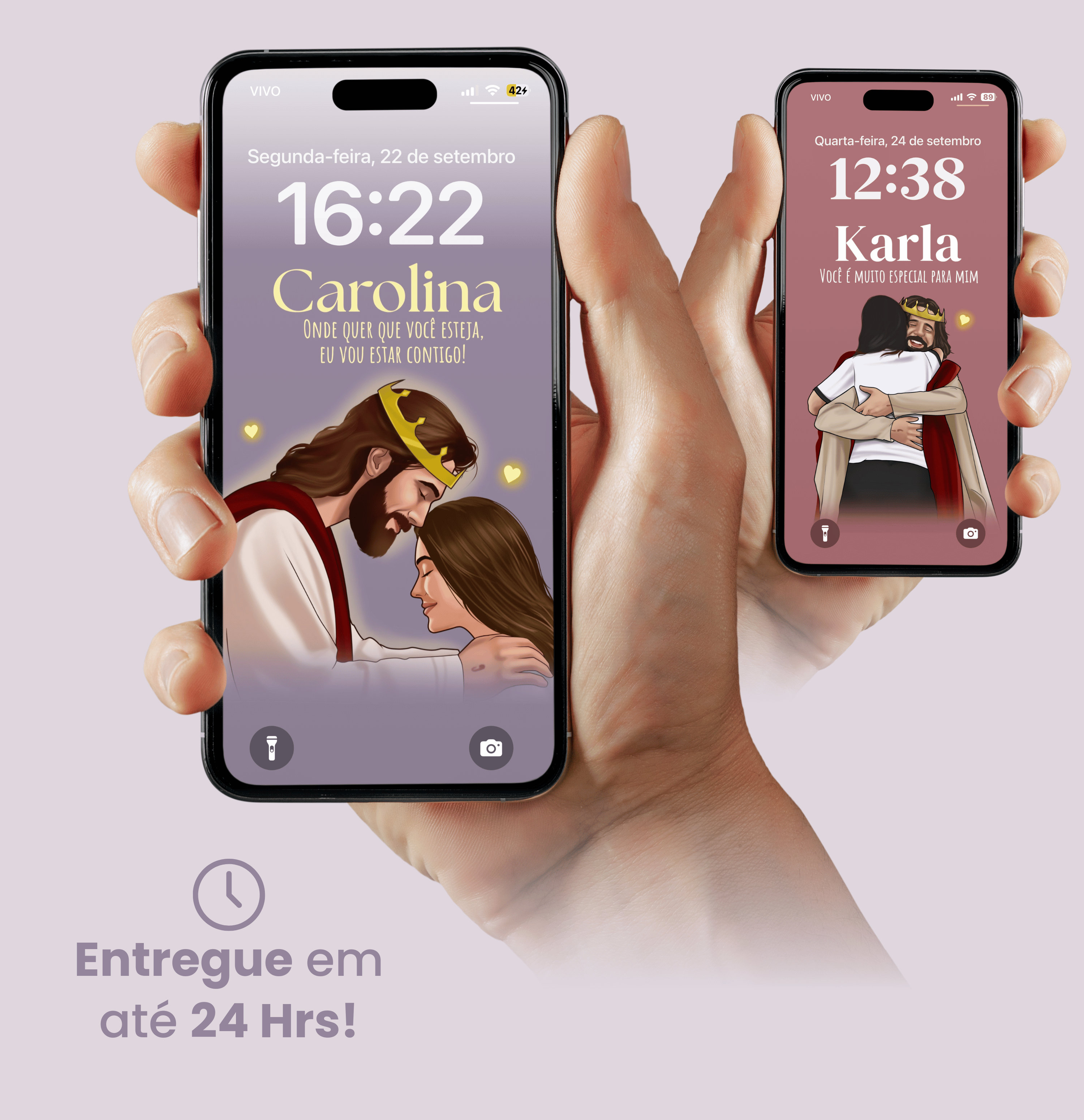 Nosso papel de parede exclusivo é personalizado com o seu nome , para que você sinta que Jesus está realmente falando com você.