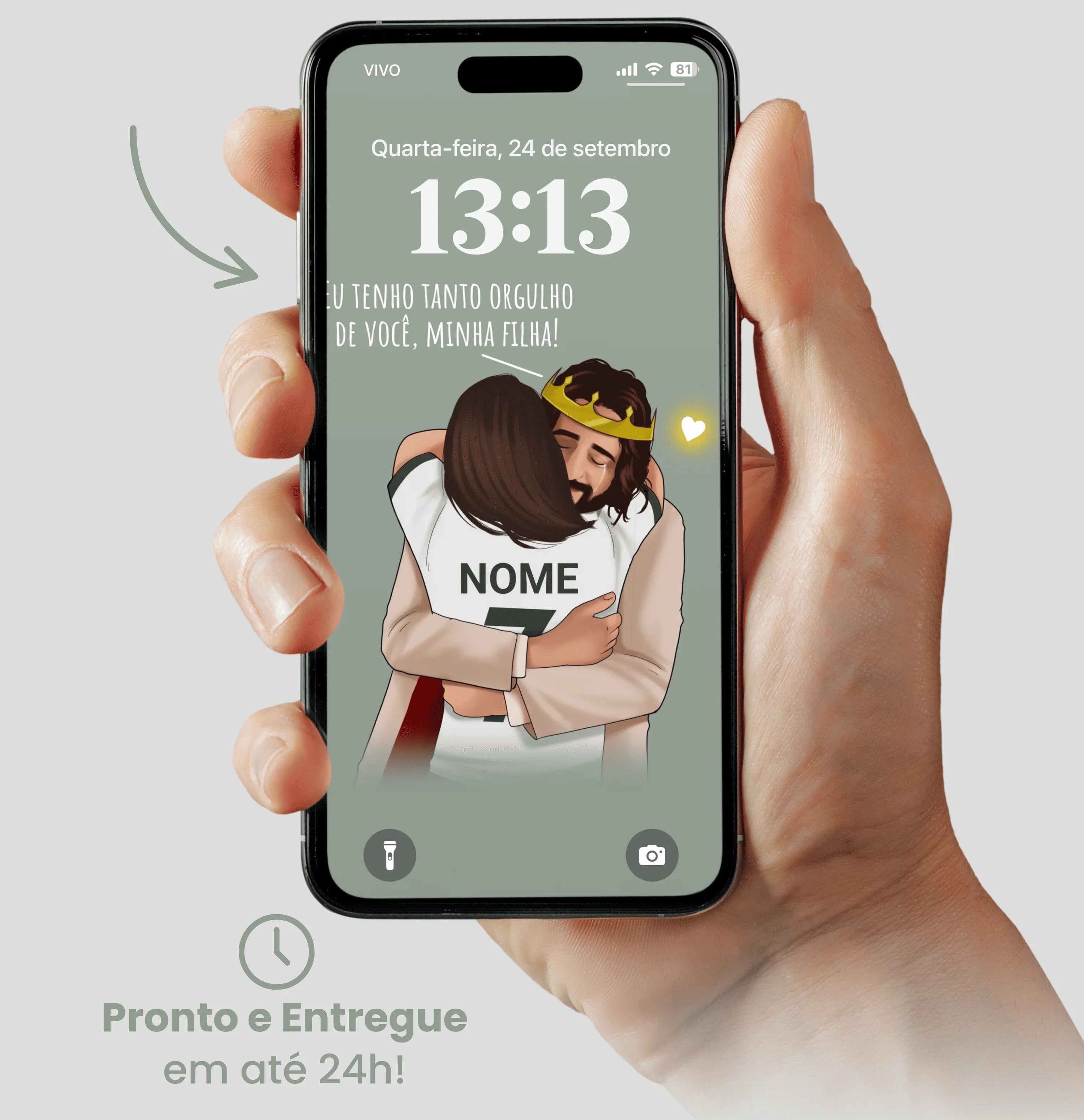 Nosso papel de parede exclusivo é personalizado com o seu nome , para que você sinta que Jesus está realmente falando com você.