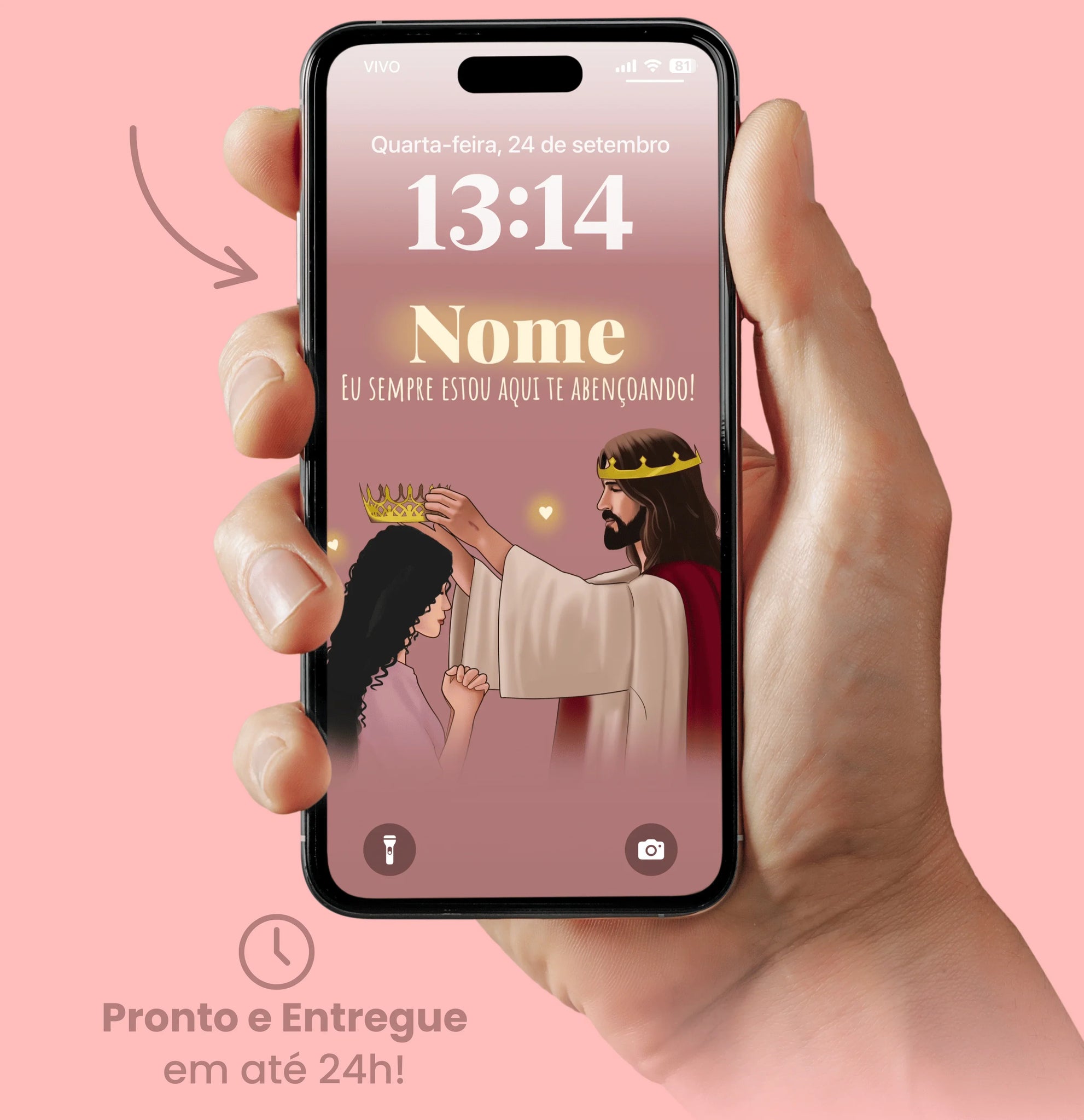 Nosso papel de parede exclusivo é personalizado com o seu nome , para que você sinta que Jesus está realmente falando com você.
