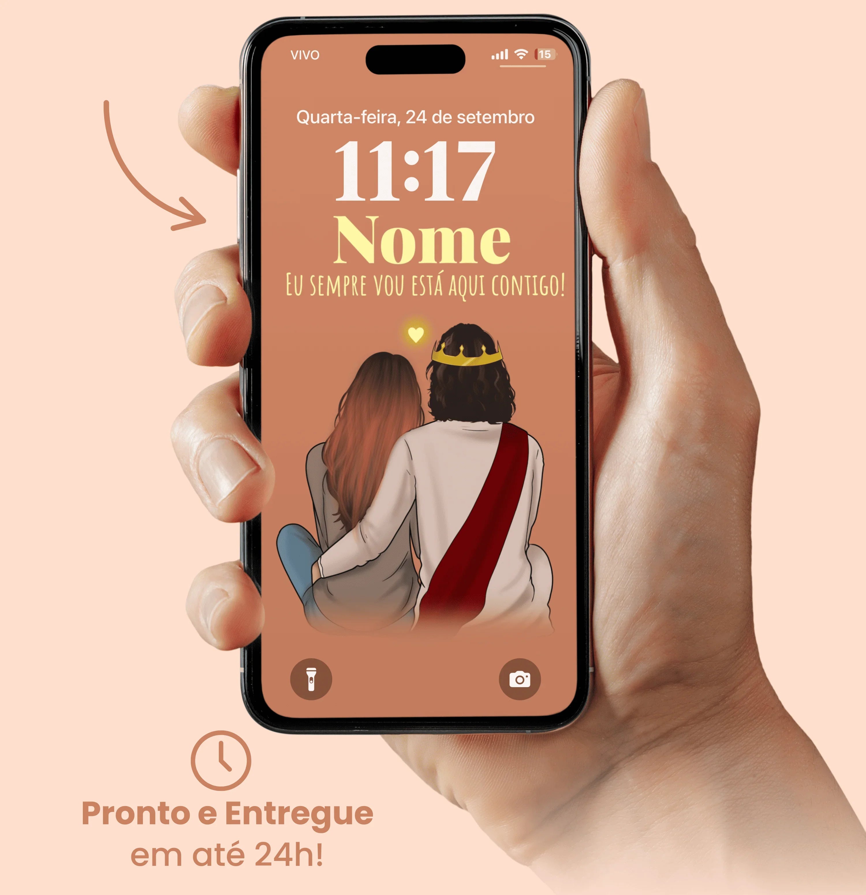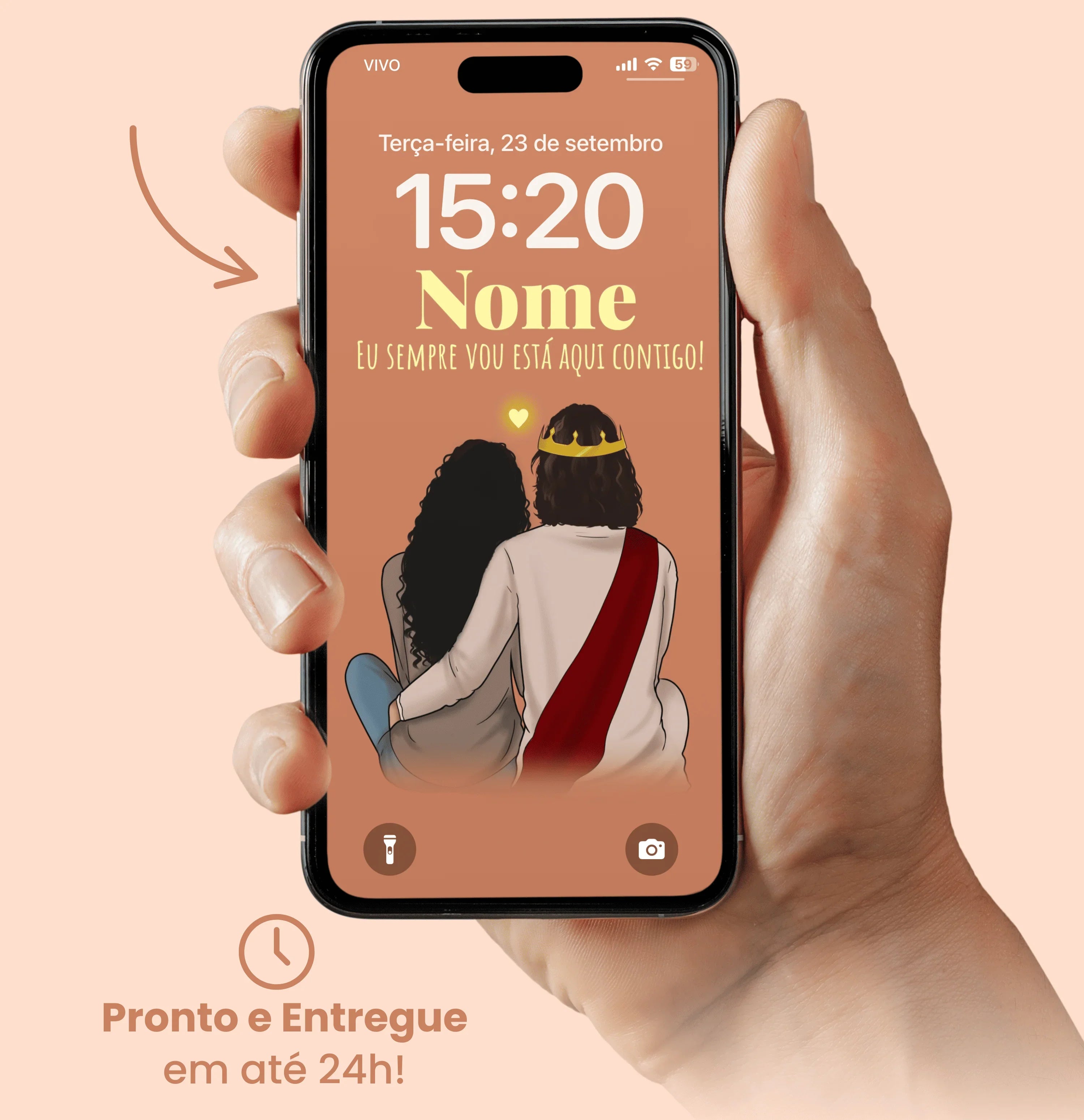 Nosso papel de parede exclusivo é personalizado com o seu nome , para que você sinta que Jesus está realmente falando com você.