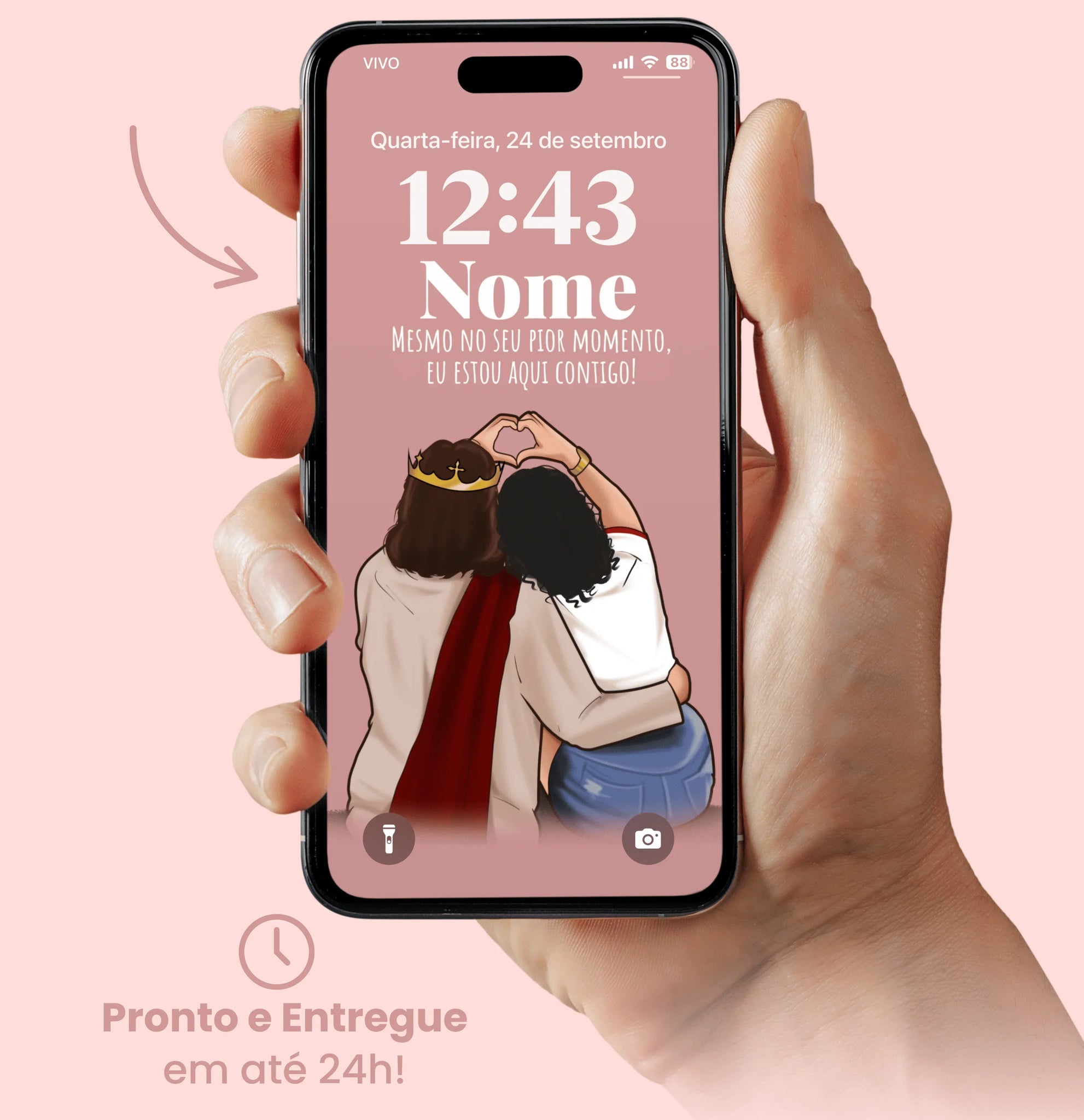 Nosso papel de parede exclusivo é personalizado com o seu nome , para que você sinta que Jesus está realmente falando com você.