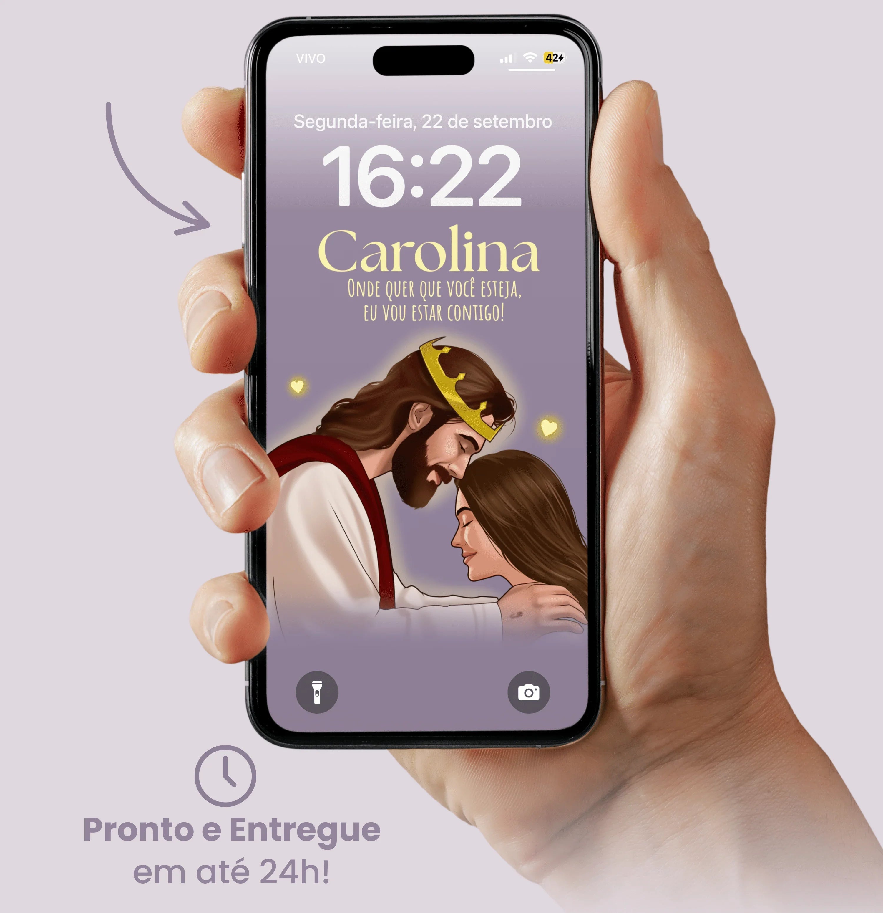 Nosso papel de parede exclusivo é personalizado com o seu nome , para que você sinta que Jesus está realmente falando com você.