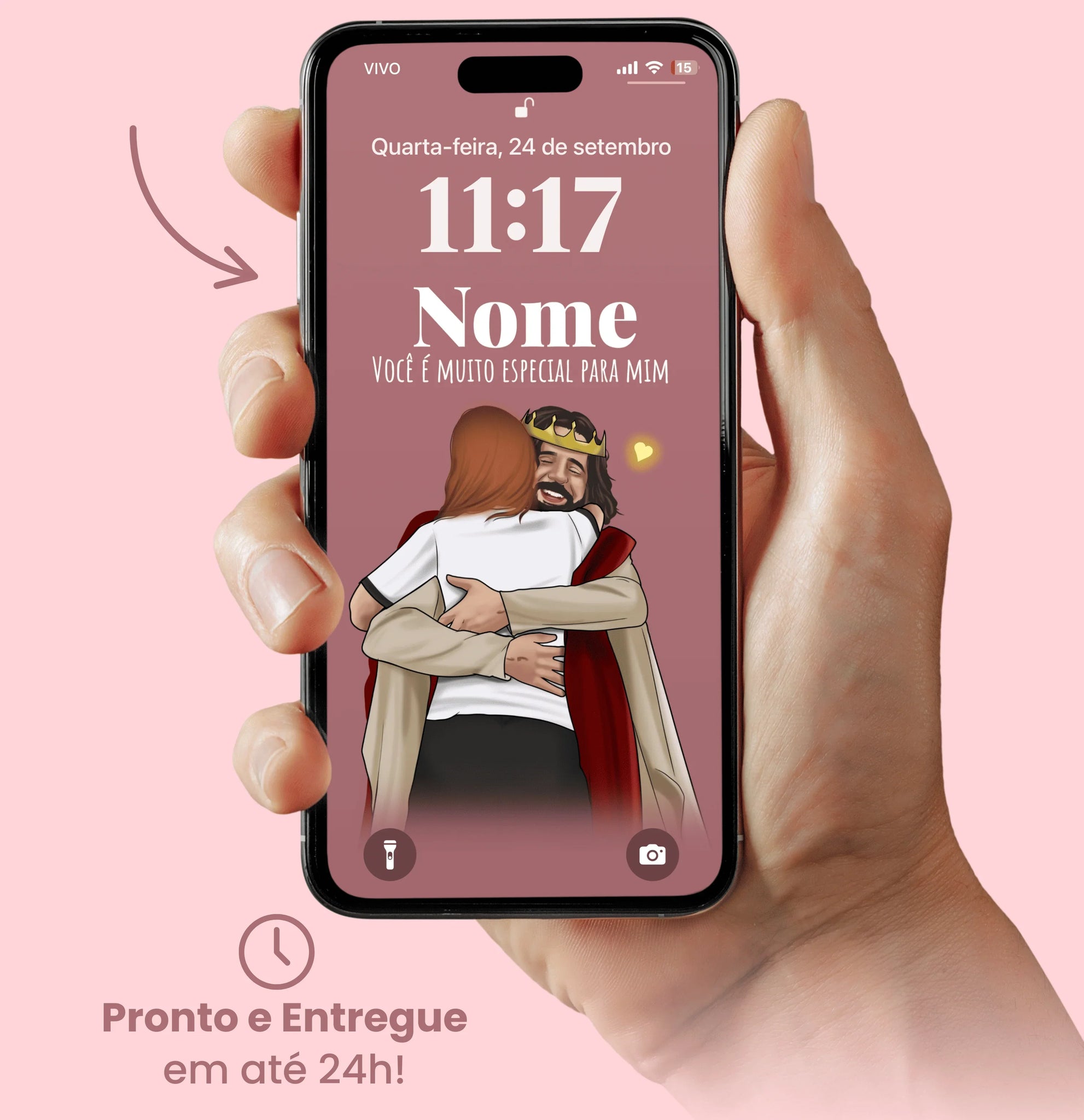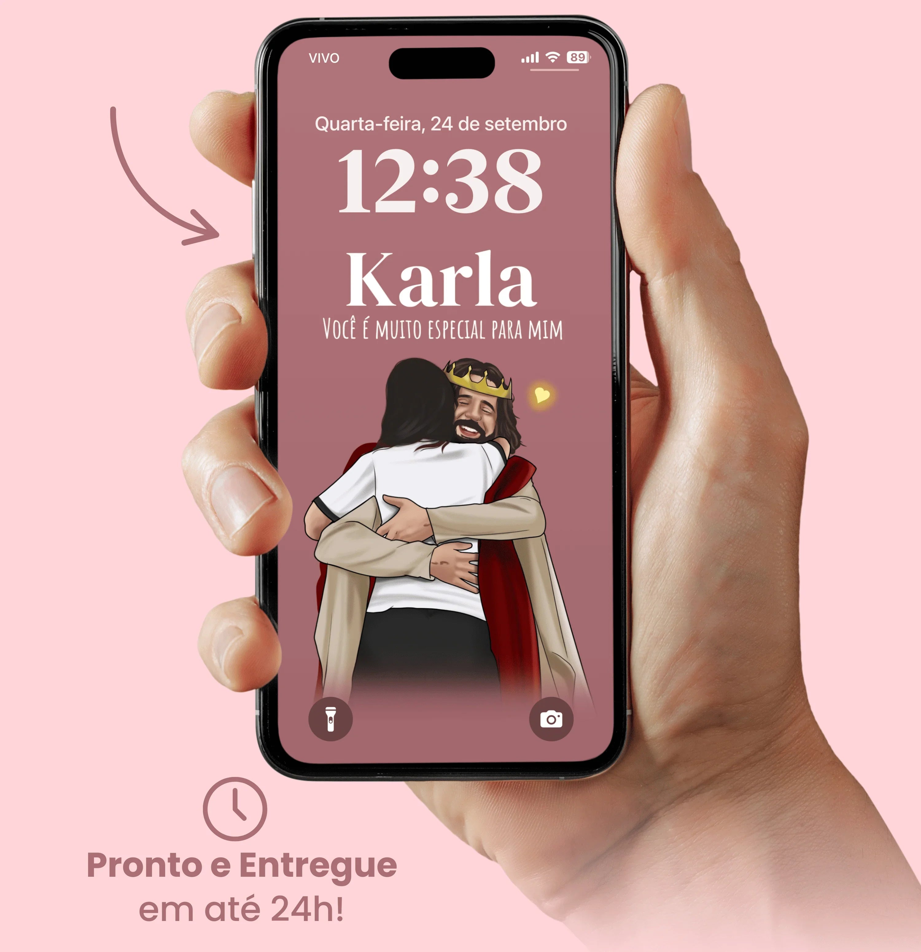 Nosso papel de parede exclusivo é personalizado com o seu nome , para que você sinta que Jesus está realmente falando com você.